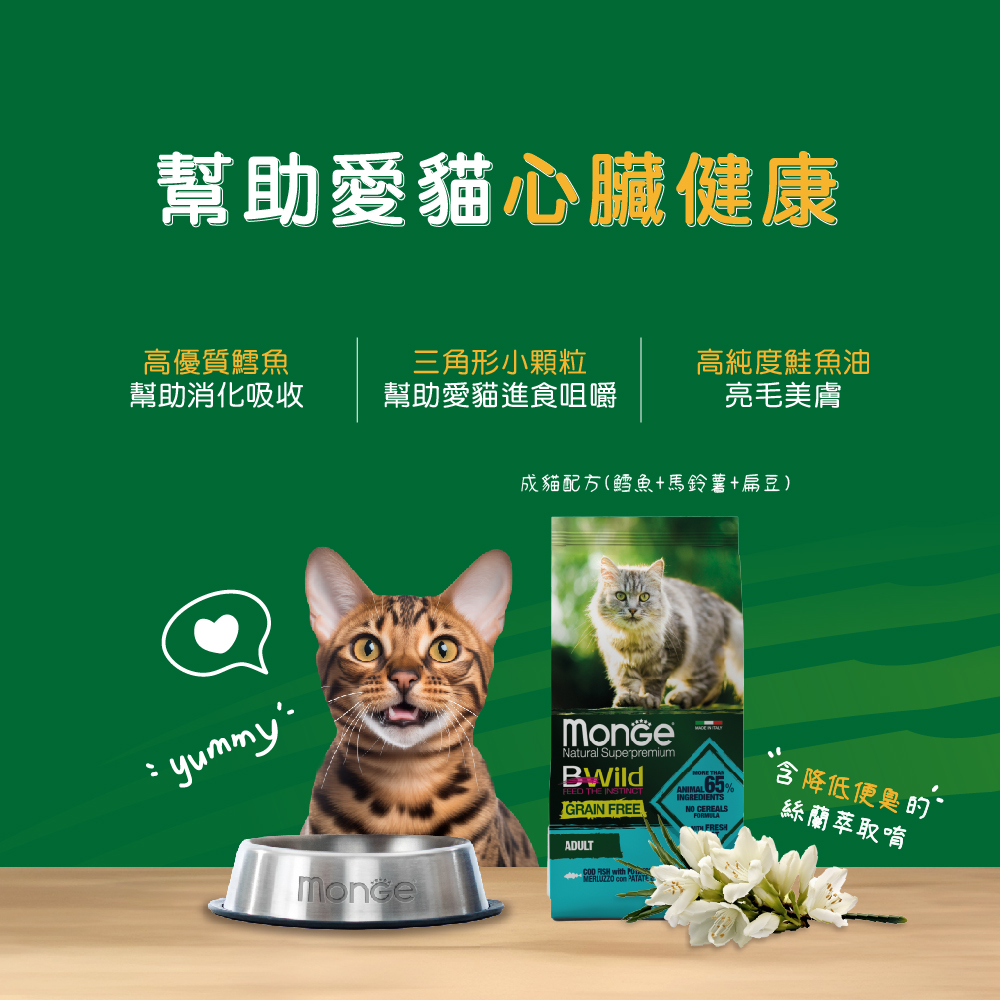 2+2的三小生活x【貓飼料推薦】MONGE瑪恩吉|真野無穀成貓配方(鱈魚+馬鈴薯+扁豆)