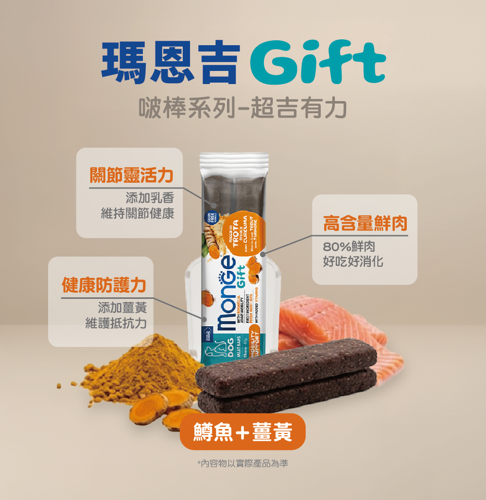 新鮮肉(75%),新鮮鱒魚(14%),水解動物蛋白(雞肉和豬肉),礦物質,薑黃(1%),草本植物(乳香0.2%)。