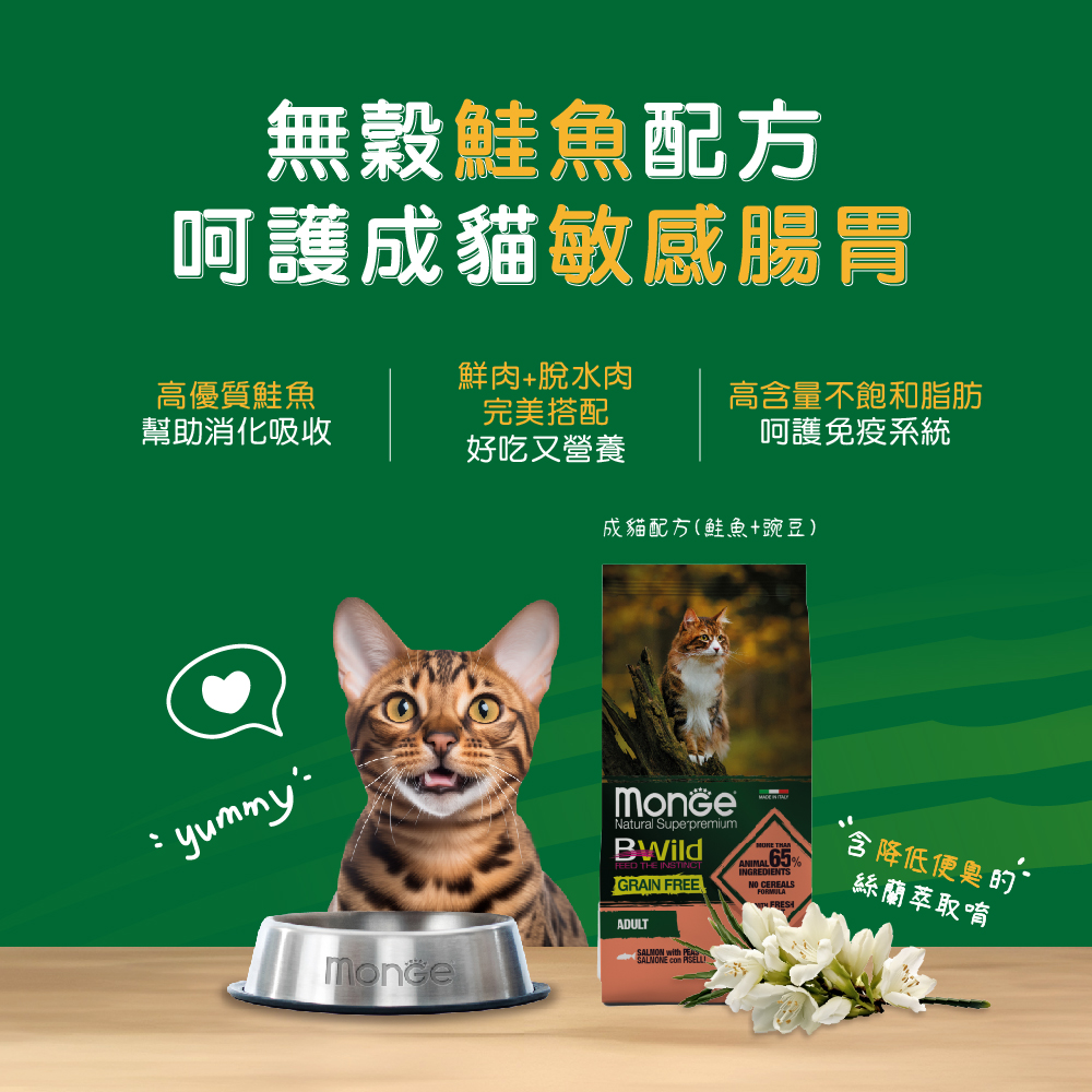 《閱讀全文》Bee的小天地x【貓飼料推薦】MONGE瑪恩吉|真野無穀-成貓配方(鮭魚+豌豆)