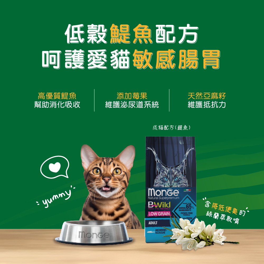 《閱讀全文》豹紋貓x【貓飼料推薦】MONGE瑪恩吉|真野低穀成貓配方(鯷魚),滿足挑嘴寶貝的寵愛選擇