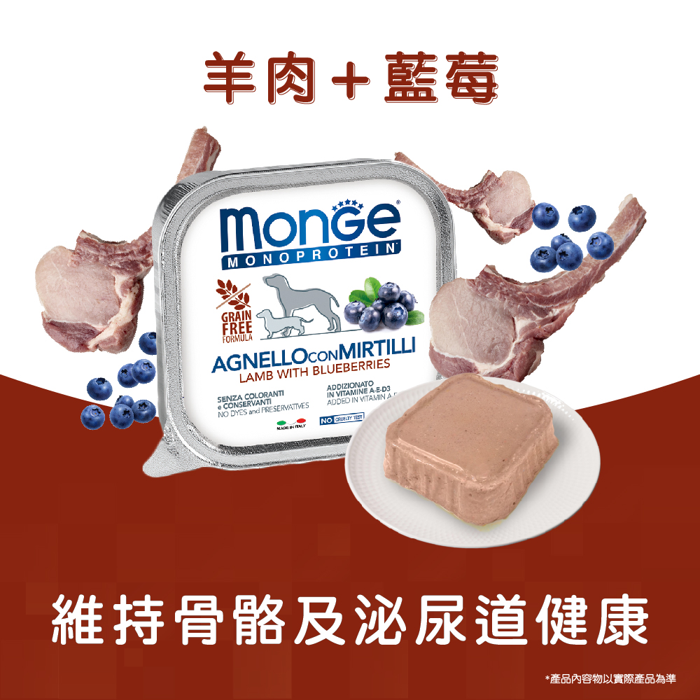LDS愛練宵維的綺綺x【狗餐盒推薦】MONGE瑪恩吉|MONO蔬果 羊肉+藍莓 無穀主食犬餐盒