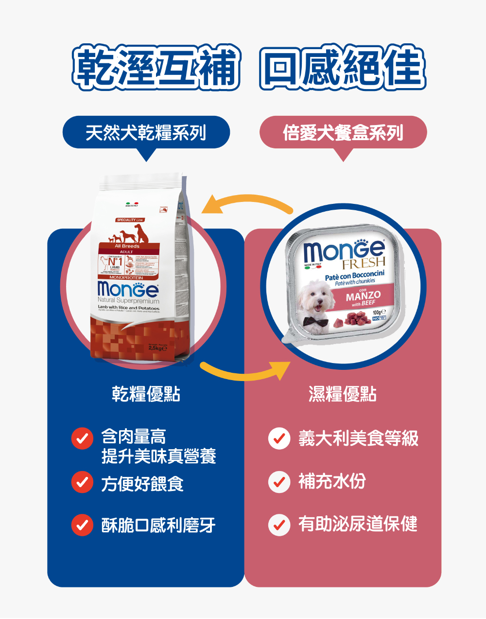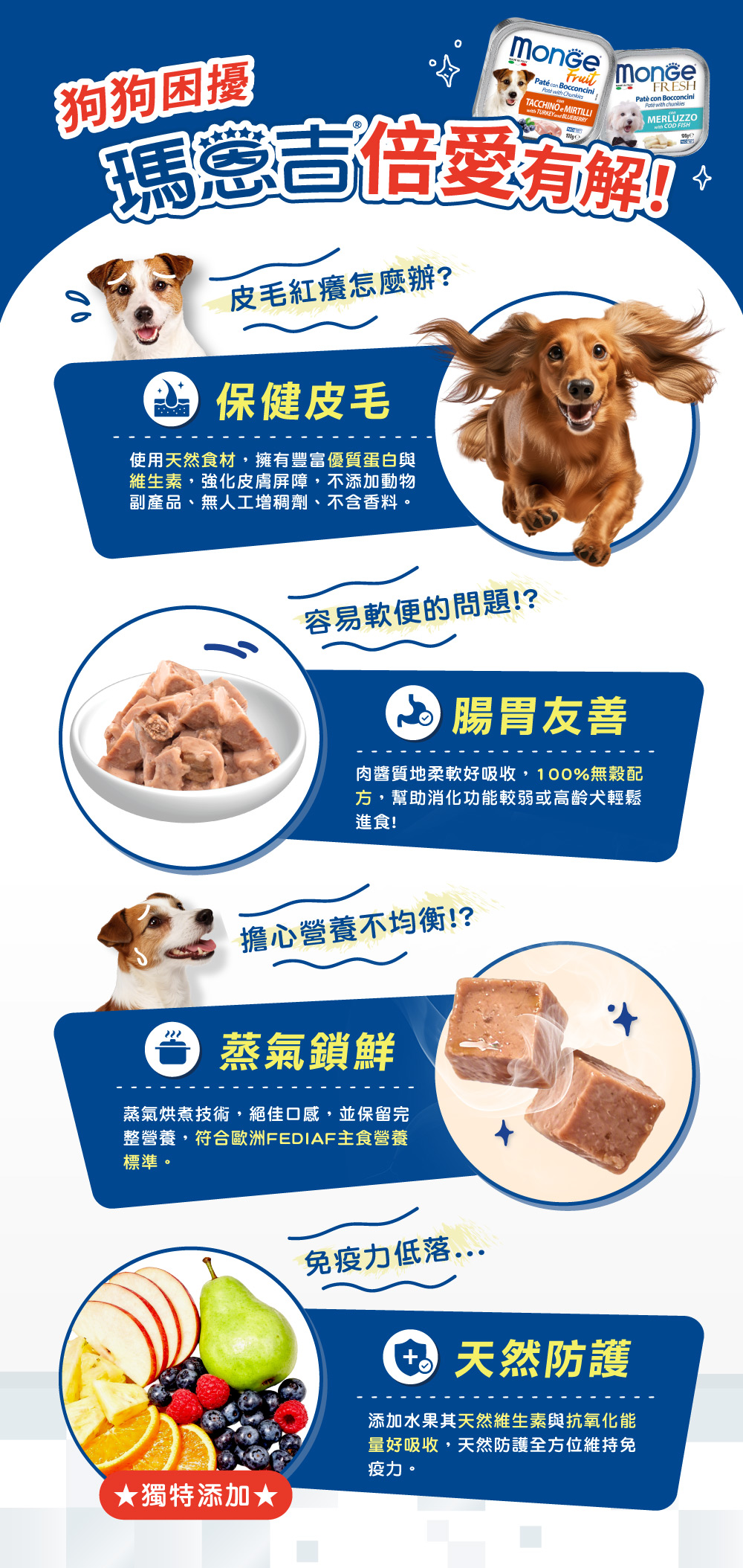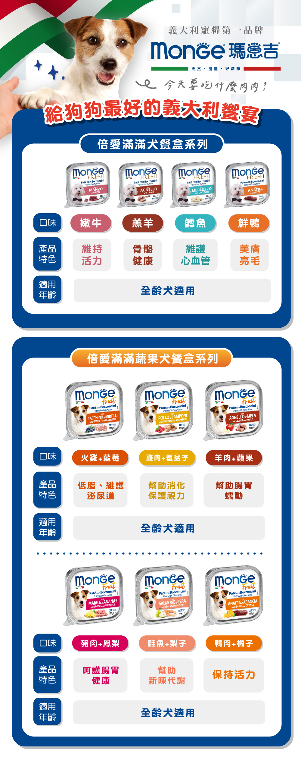 塔塔拉.沒有美食就不是好人生 x【狗飼料推薦】MONGE瑪恩吉|天然呵護成犬低卡配方(鮭魚)