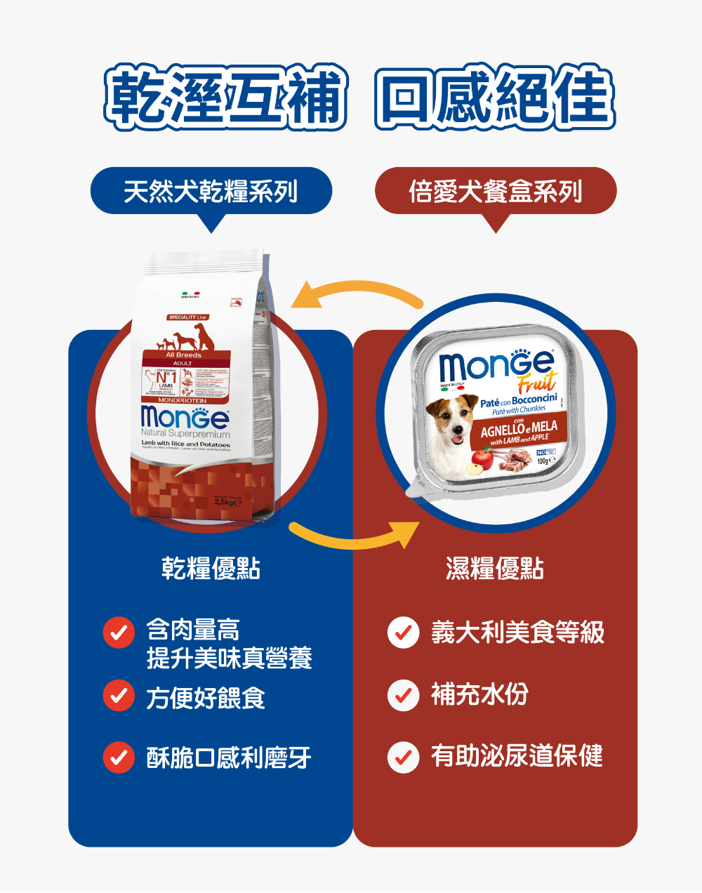 現在市面上有許多不同品牌的乾糧,各位狗奴才們都能依照自己喜歡的國家、成分去挑選,而在眾多的選擇當中,Monge瑪恩吉寵糧算是相當歷史悠久的品牌,最久可以追溯到1963年Monge瑪恩吉在義大利創建工廠...